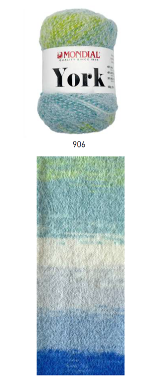 Preja York je mehka kosmatena preja v meliranih barvah odlična za jesenske puloverje, brezrokavnike ter zimske šale in plete. Preja je lahka za uporabo in primerna za začetnike pletenja. Izdelki iz nje bodo čudovito barvasti in puhasti.