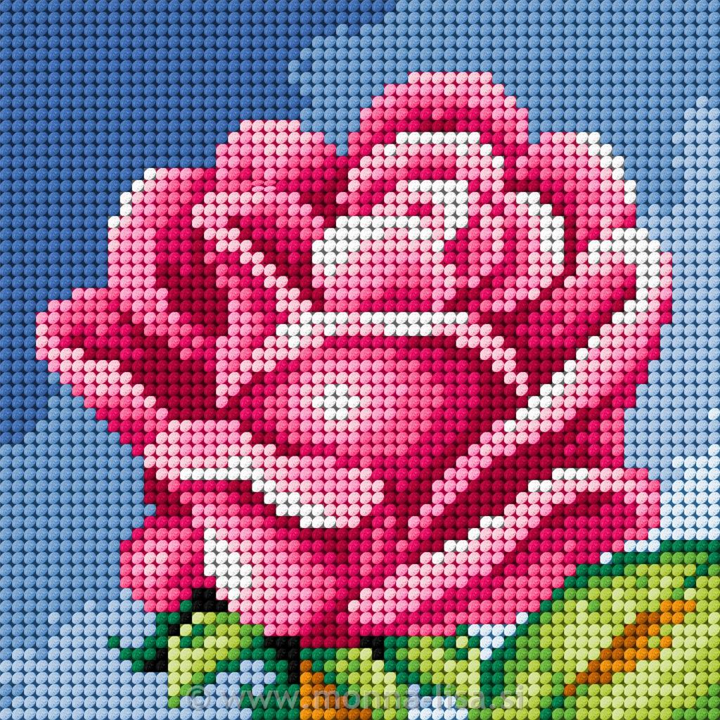 Gobelin velikosti 15x15cm. Priložene so prejice za vezenje in šivanka s topo konico. Motiv je natisnjen na stramin.