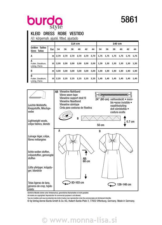 Priporočeno blago: tetra/krep, tanjša volnena ali mešana tkanina