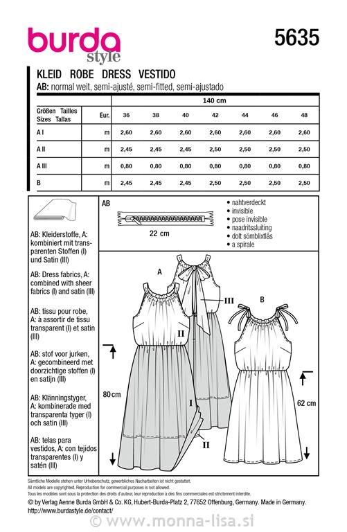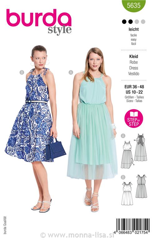 Kroj za simpatično poletno oblekco na naramnice, rezano ter nabrano v pasu. Lahko zašijete tudi daljšo različico ter prišijete volanček. V obeh primerih boste pripravljene na vroče poletne dni ter dopust.
